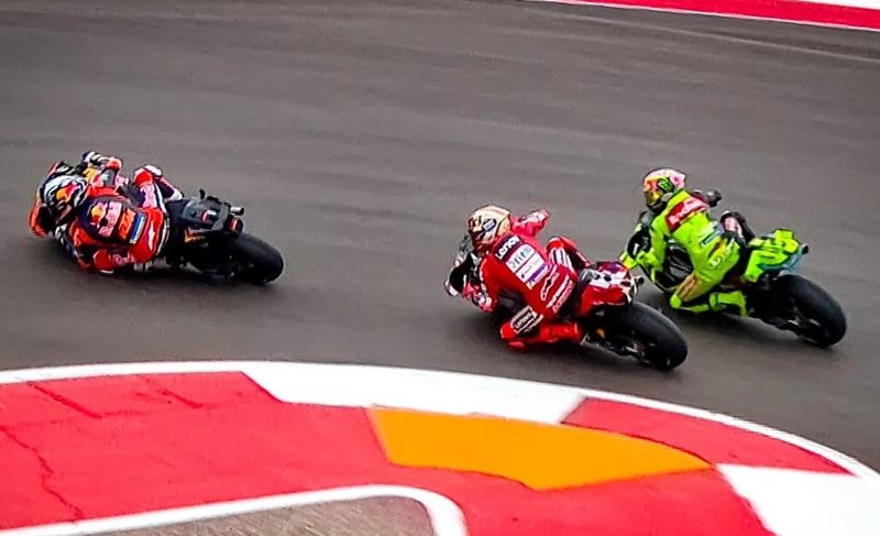Umjesto toga, Marquez je u već prvom krugu Sprint utrke pao pri pretjecanju (gornja fotografija) i još pritom srušio Fabia Di Giannantonia na VR46 Ducatiju. Na ime toga je zaradio „long lap“ za nedjeljnu utrku. Doduše, tu se ni Bezzecchi nije proslavio. Njemu su Sprint utrke jedina slaba točka ove sezone, pa je tako pao u Tajlandu dok je vodio, a sad je posrnuo kad je držao drugo mjesto iza (na kraju drugoplasiranog) Pecca Bagnaie. Da, subota bude gora, Bezzecchi je ranije na kvalifikacijama smetao baš Marquezu i na ime toga je kažnjen tako što je u nedjelju u utrku krenuo s četvrte umjesto druge pozicije. Nije da ga je to smelo.