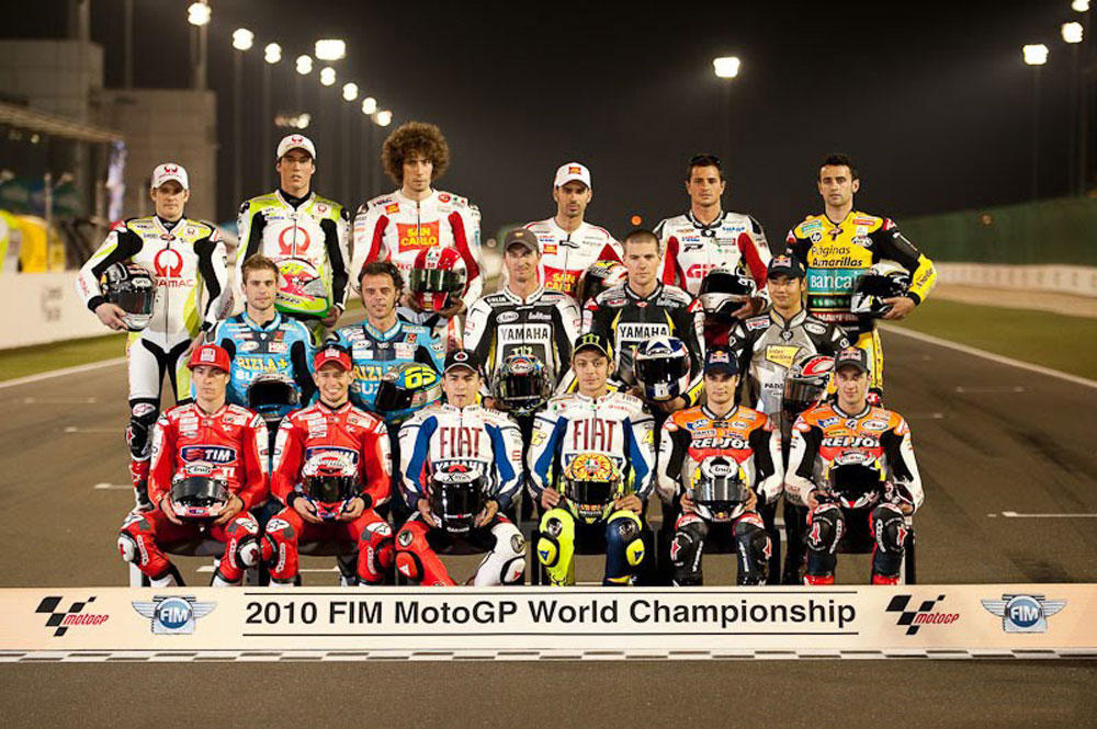 Od lica s priložene fotografije snimljene na početku prošle sezone, ove godine nećemo gledati Kallia i Espragaroa koji su „degradirani" u Moto2 prvenstvo i Melandrija, koji je prebjegao u Superbike. Umjesto njih, u MotoGP elitu ulaze Cal Crutchlow na Tech3 Yamahi, Karel Abraham na Cardion AB Ducatiju i povratnik Toni Elias na LCR Hondi. Osim osvježavanju, MotoGP rešetka je bila potvrgnuta i temeljitom preslagivanju.