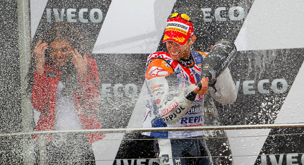 Iako je sve bilo jasno već kada se Lorenzo kao jedini konkurent nije pojavio na startu, Stoner je vozio bez zadrške i osvajanje naslova prvaka uveličao pobjedom