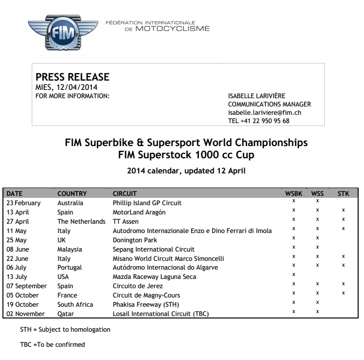 U istom kurtoazno-birokratskom tonu izražava se želja da se Moscow Raceway ponovo uvrsti u kalendar za 2015. godinu i da ostane dijelom SBK prvenstva do isteka ugovora 2021. godine. Otkazivanjem utrke, koja se trebala održati 21. rujna, stvorena je velika rupa u rasporedu, pa će tako Superbike strojevi mirovati od 7. rujna i okupljanja u Jerezu do prvog vikenda listopada kada je predviđena utrka u Magny-Coursu.
