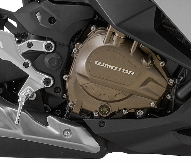 QJ Motor SRK 500 RR bez poluge stražnje kočnice na klasičnom mjestu. Ispod oplata se vidi aktuator za spojku